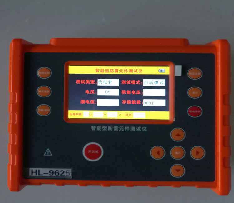 防雷元件測試儀由中大規模集成電路組成。本表輸出功率大,起始動作電壓測量范圍:0-2000V,漏電流測量范圍:0.1~199.9uA,絕緣電阻:0~1000MΩ,重復穩定性好,一鍵測量方便快捷。